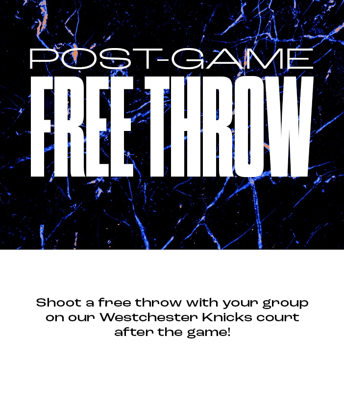 Take your gameday experience to the next level with a group photo at the center of the Westchester Knicks court.
