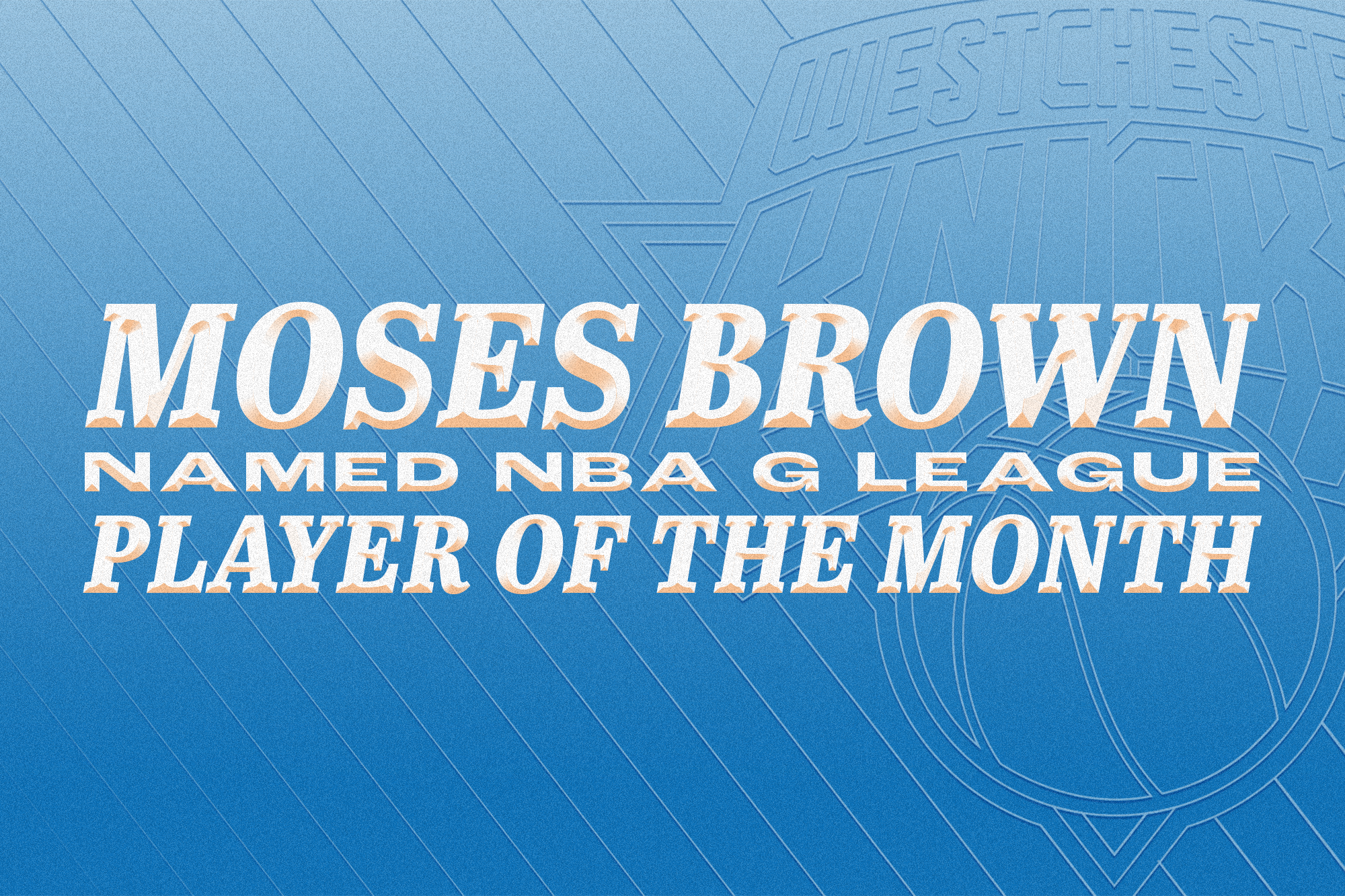 White Plains, NY – February 4, 2025 –The NBA G League announced today that Moses Brown of the Westchester Knicks, the official NBA G League affiliate of the New York Knicks, has been named NBA G League Player of the Month for the month of January.