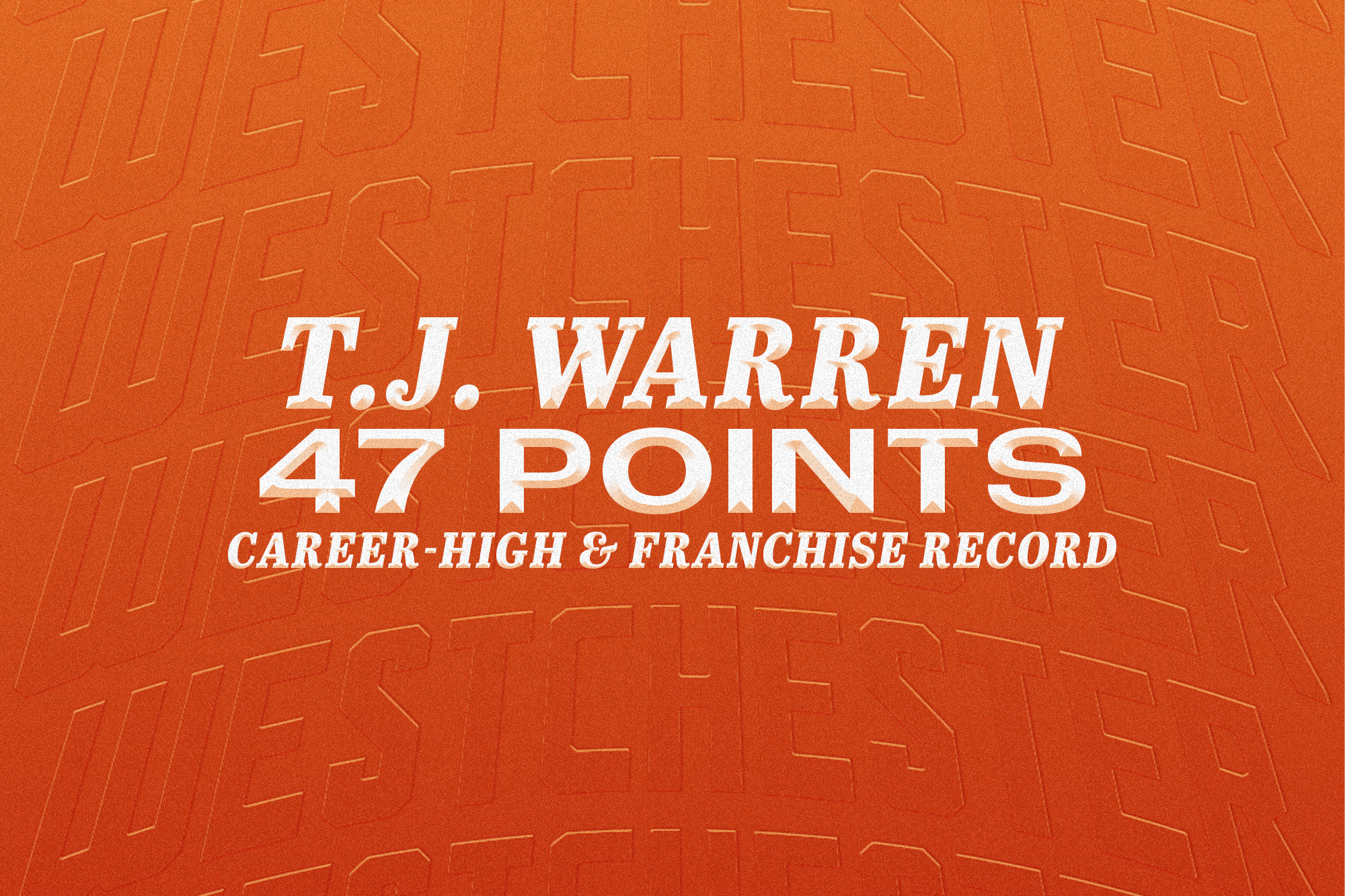 Warren, 31-years old (6’8, 234-pounds), showcased a dominant performance for the Westchester Knicks, recording a career-high 47 points on 60.9-percent shooting (14-23), and tying his career-high with seven made threes on 53.8-percent shooting (7-13), also adding 11 rebounds to finish with a double-double.