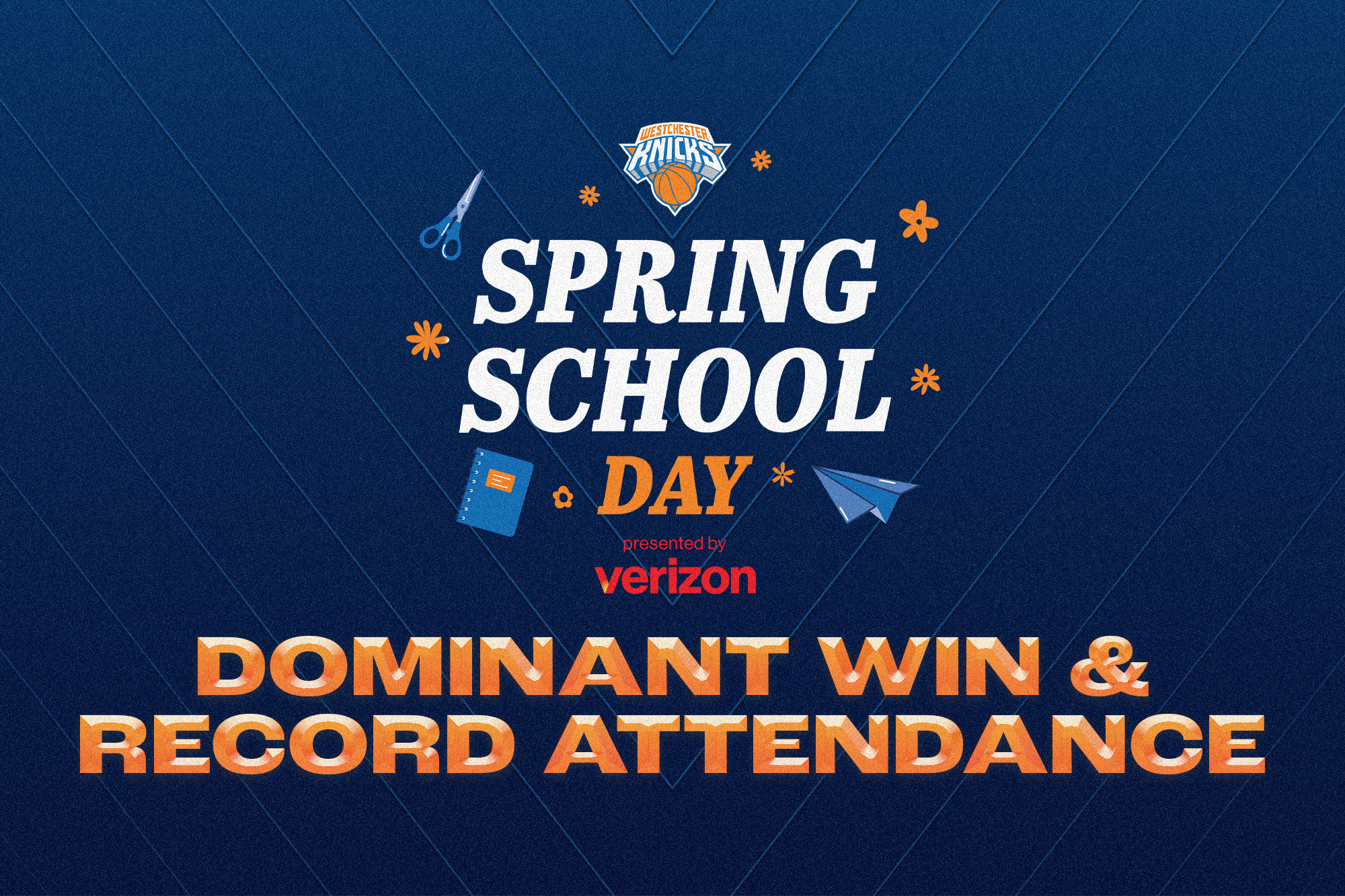 The Westchester Knicks celebrated Spring School Day, presented by Verizon, setting a new benchmark for the Westchester County Center with a record of 3,437 fans in attendance. The previous record held at the Westchester County Center was 3,341, where the Westchester Knicks emerged victorious vs. the Santa Cruz Warriors, 99-98 on November 30, 2016.